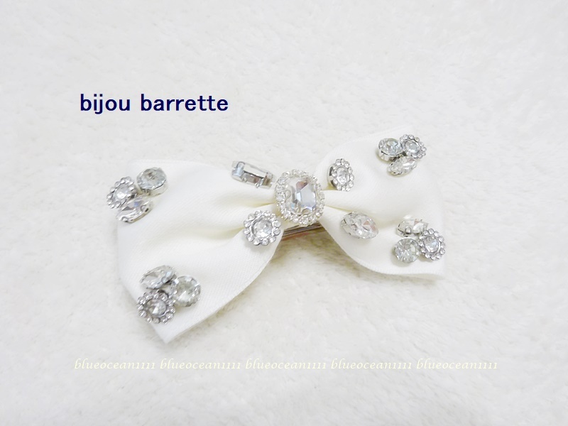 > 未使用品 オフホワイト お上品で清楚【マットサテン ビジューリボンバレッタ】ラインストーン リボン フォーマル ワンピ 130 140 150