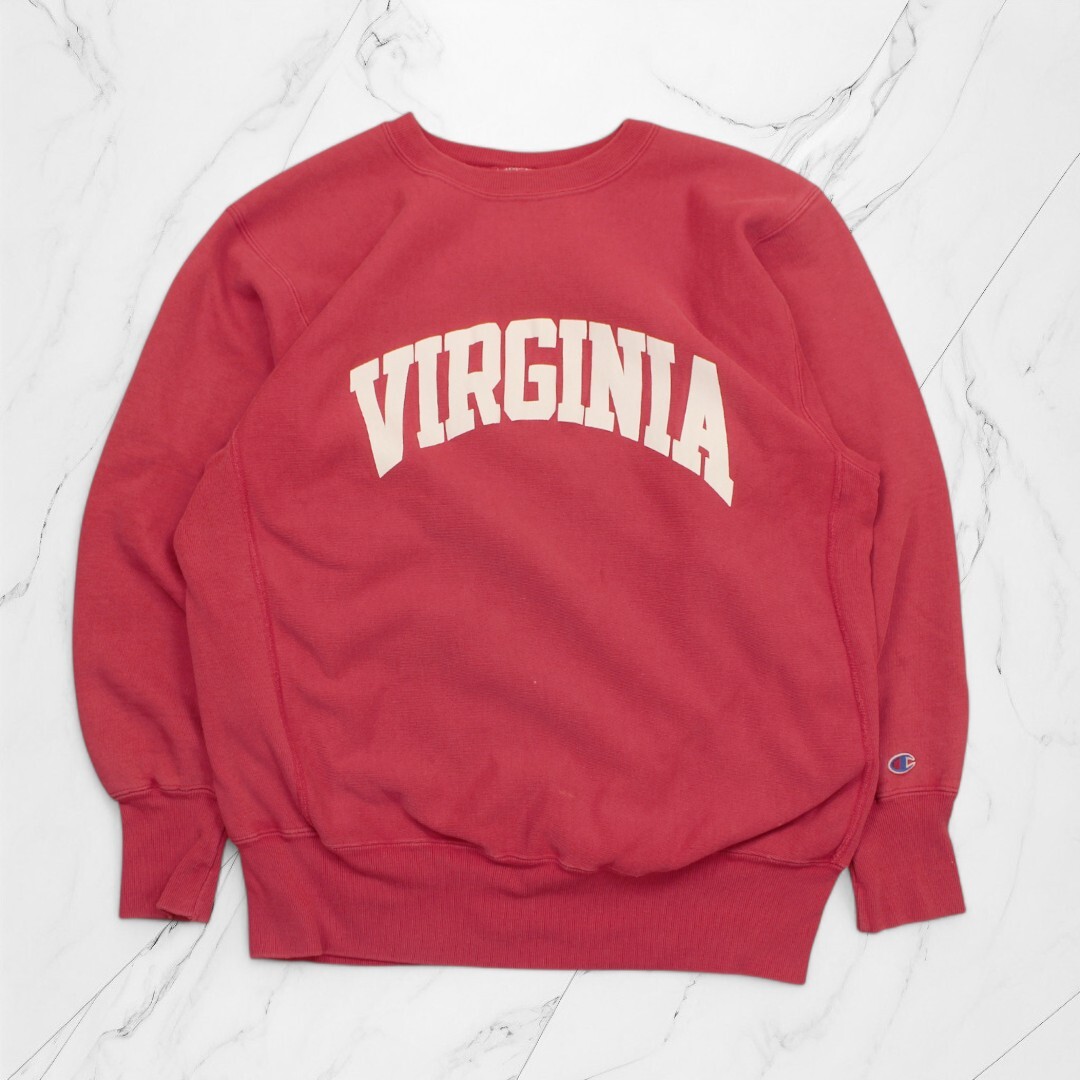 - 古着 90s USA製 Champion Reverse Weave Washed Red チャンピオン リバースウィーブ 刺繍タグ 【Vintage】