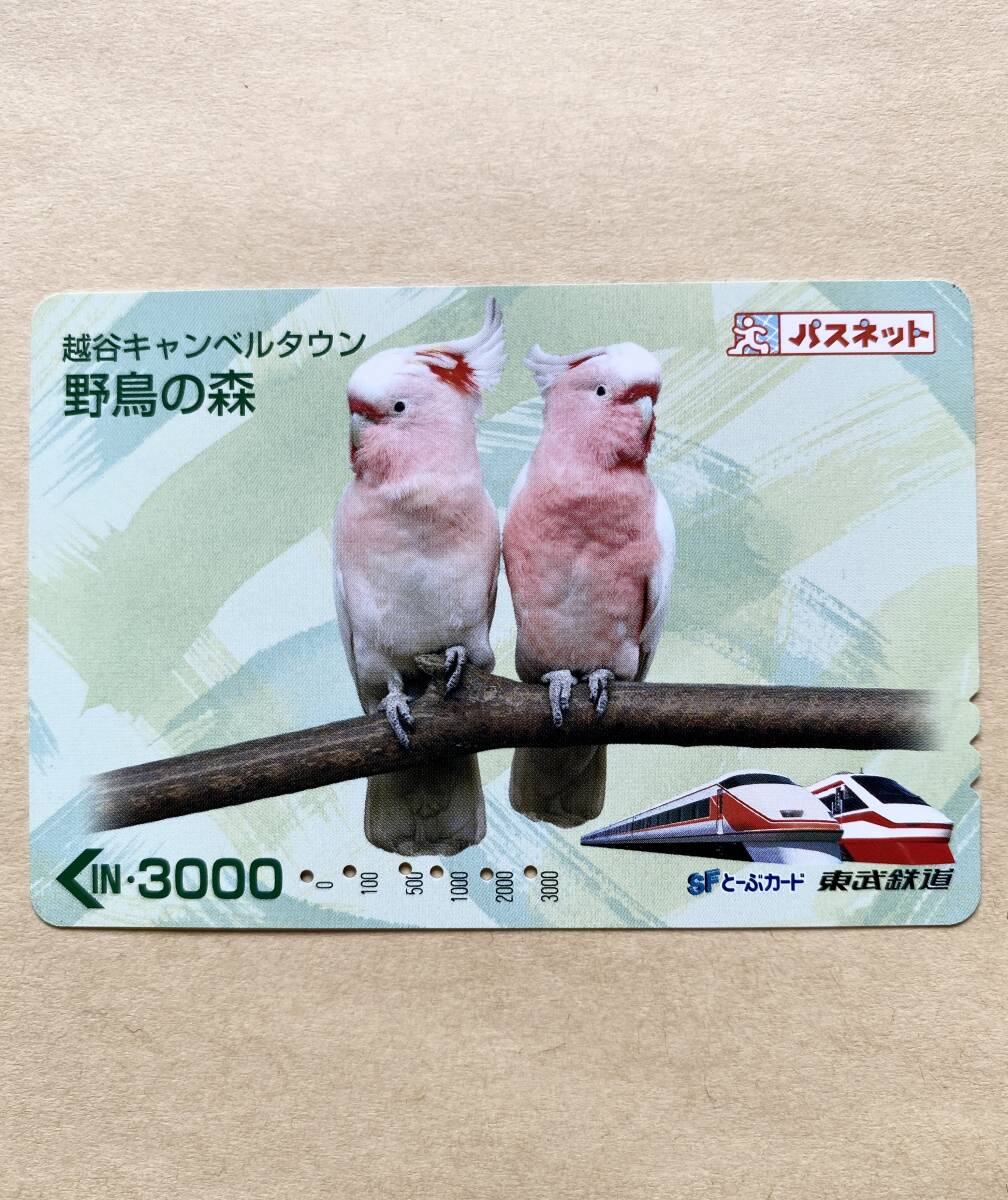 - 【使用済】 パスネット 東武鉄道 越谷キャンベルタウン 野鳥の森 クルマサカオウム