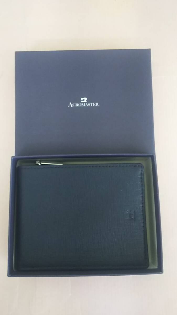 - C7215-185♪【60】ACROMASTER 本革コンパクト二つ折り財布 (ネイビー)