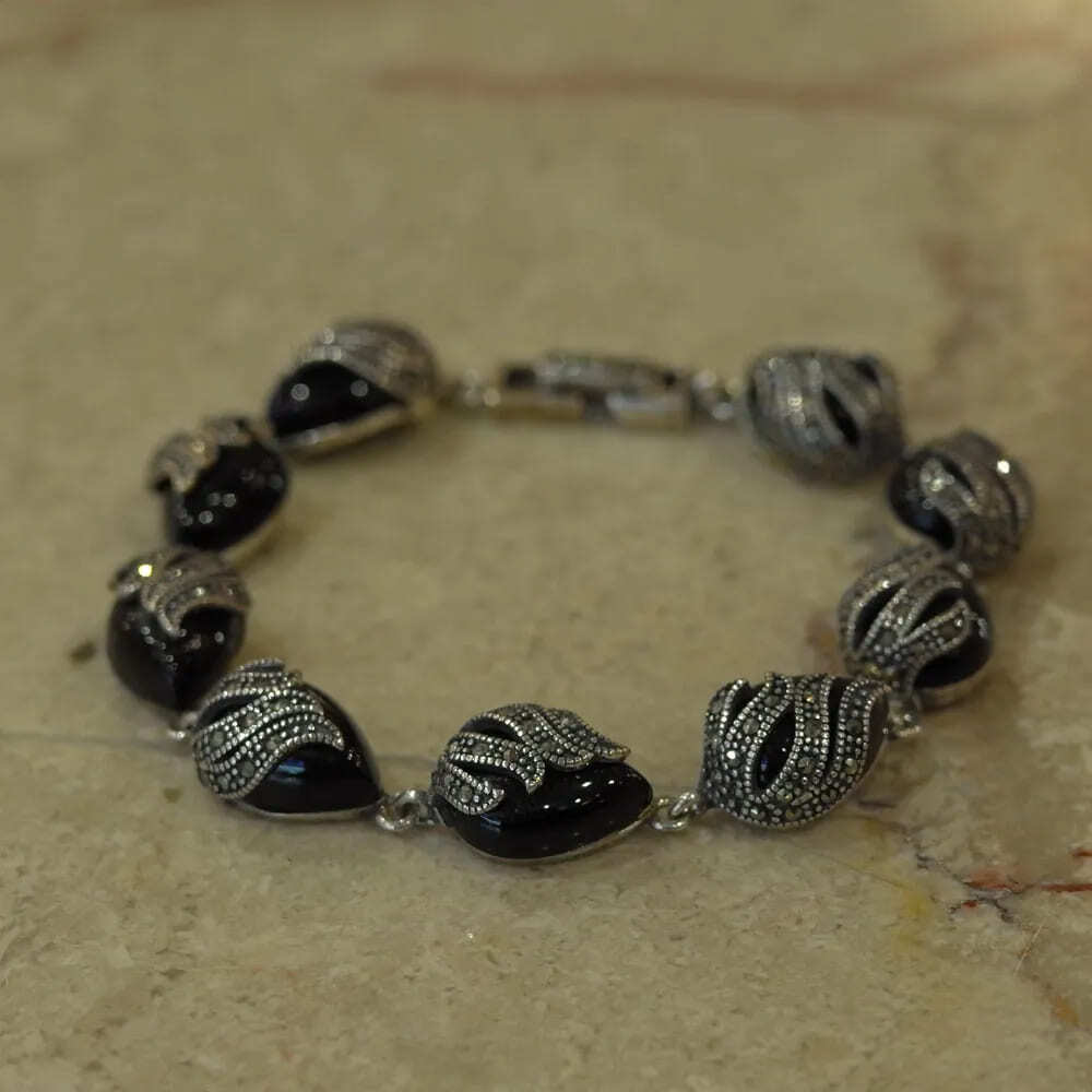 - 【”気品”漂うオニキスのブレスレット シャネルバックとの相性◎】フランスヴィンテージアクセサリーバングル天然石シルバー点ものパリ
