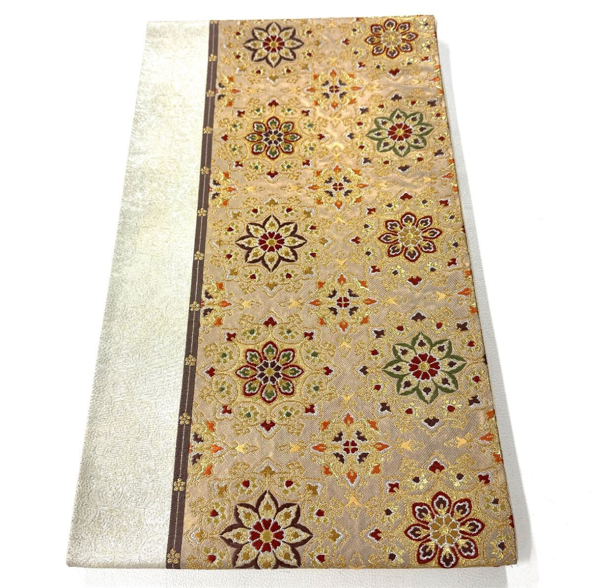 - 帯206 本家加納謹製 高級 正絹 六通 袋帯 華文 花文
