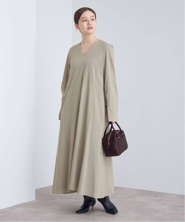 > 昨季24AW IENAイエナ スリットスリーブワンピース◆ロングマキシ丈 ジャーナルトゥモローアローズplageスピックドゥーズィエム ベージュ