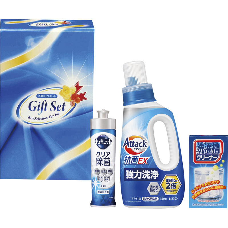 〇注意事項・送料800円が販売価格に含まれています・お取り寄せ商品です。弊社にて手配後、メーカー・卸業者からの直送になります。・まれにメーカー欠品、出荷遅延等が発生致します。問題発生時は別途メールにてご連絡致します。・配送方法の指定、日時指定、置き配、ギフト対応、他商品との同梱配送などは対応できません。・まとめ買いや複数購入の場合は通常より発送に時間が掛かる場合がございます・複数個口の場合、2階以上への搬入ができない場合があります。(その場合は1階での受け渡しとなります)・大型連休、お盆、年末年始などは発送をお休みさせていただく場合がございます・メーカー都合により、パッケージは予告なく変更される場合がございます・梱包用のダンボールはリサイクル品を使用させていただきます。・注文に関するご連絡(注文確定通知・発送通知など)はメールでご案内させていただきます※商品ページの内容について、少しでもご不明な点などがございましたら購入前に一度ご連絡ください〇商品説明あらゆるギフトシーンにおすすめです!衣類のすみずみまで徹底洗浄の花王アタック抗菌EXが入った液体洗剤ギフト〇商品仕様●内容:花王アタック抗菌EX:750g・花王キュキュットクリア除菌:220mL・洗濯槽クリーナー5錠×各1規格●化粧箱入(165×285×100mm) 1320g●加工地:日本(出典:株式会社 八大)