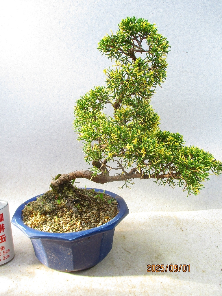 - [野風盆栽流通] 斑入真柏 (7145青丸プラ鉢)全高:39㎝※同梱包は「まとめて取引」手続厳守※120サイズ*送料明記