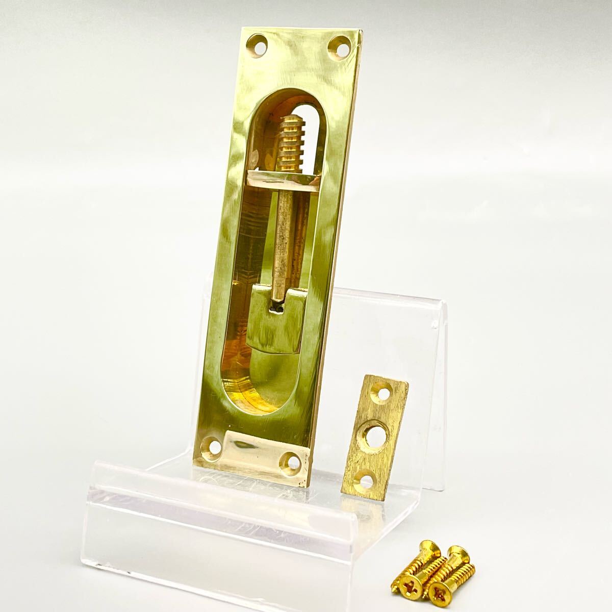 - [送料全国一律360円] ベスト 角引手付 捻締 120mm ゴールド 真鍮製 鋳物 BEST アンティーク レトロ 窓 扉 ドア 鍵 建具 金物屋 在庫 未使用