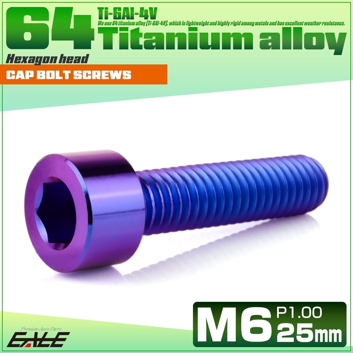 - チタンボルト M6×25mm P1.0 キャップボルト 六角穴付きボルト パープルブルー JA1940