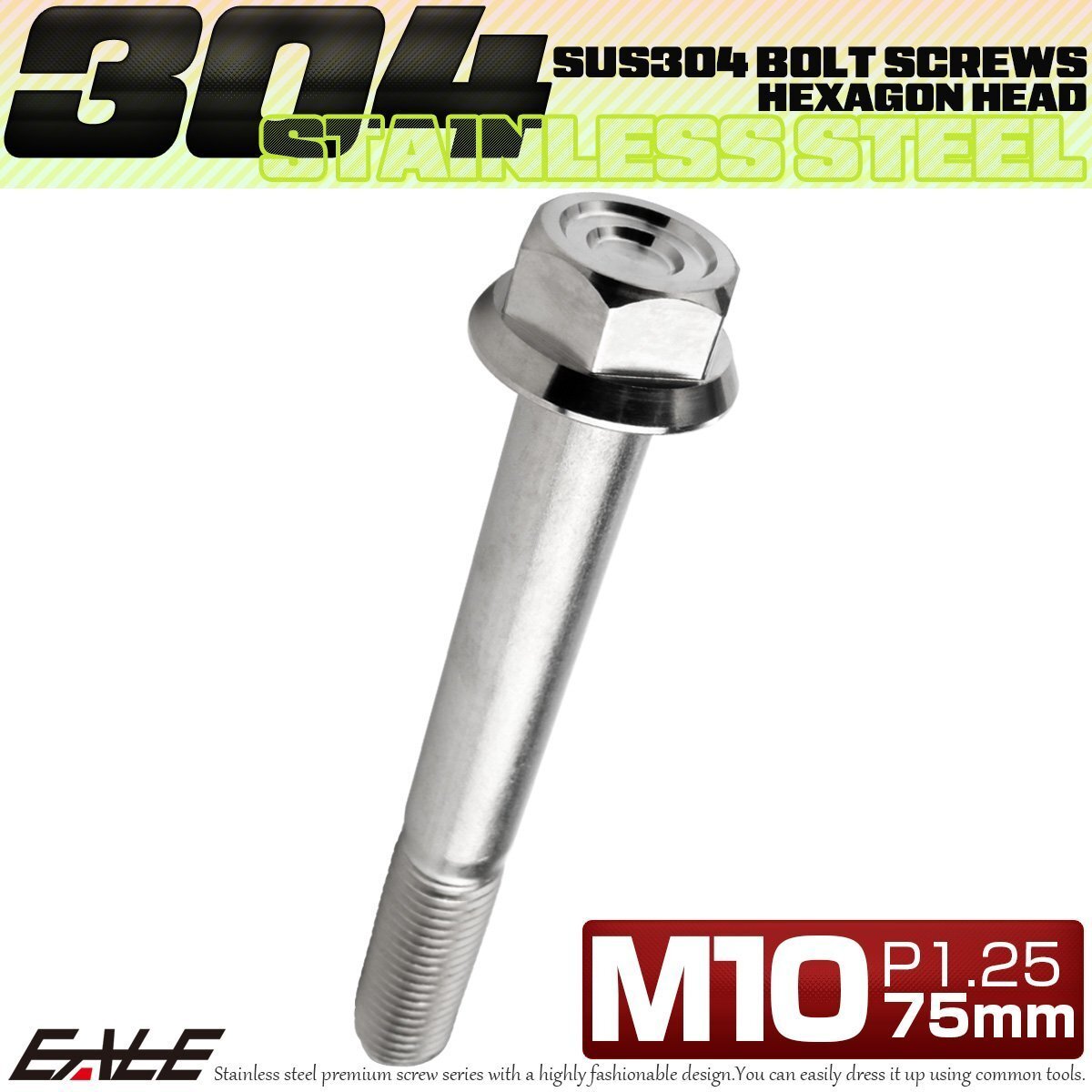 - M10×75mm P1.25 フランジ付き 六角ボルト カスタムヘッド SUS304 ステンレス シルバー TB1159