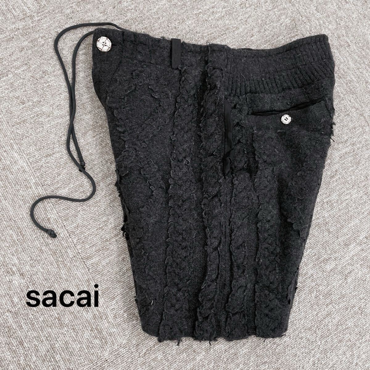 - 【652】 サカイ sacai ウール ショートパンツ デザインパンツ ウールパンツ チャコールグレー ニットパンツ