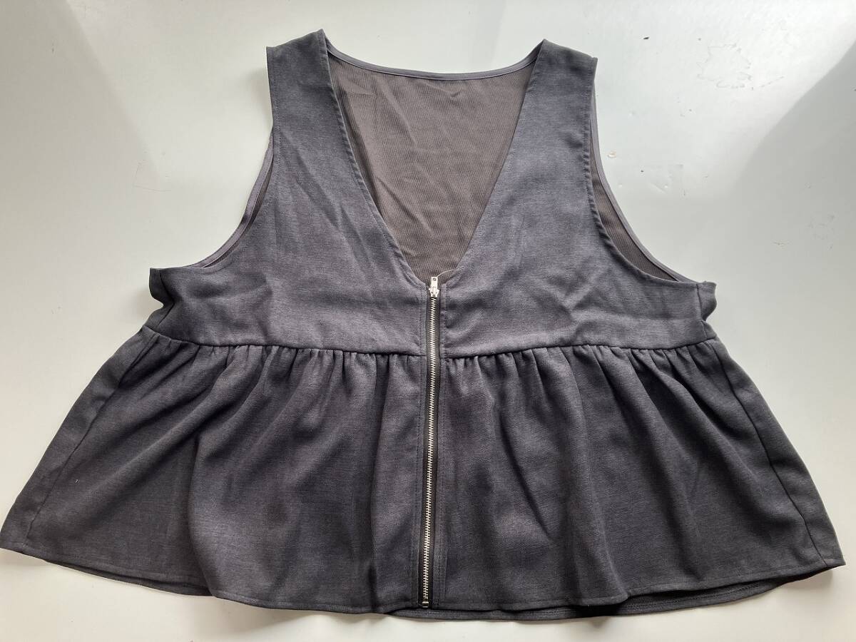 - 新品■大きいサイズ4L■ジップアップ切替フリルトップス■チャコールグレー