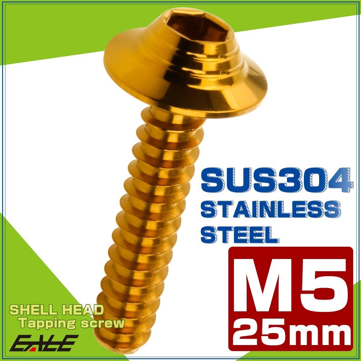- タッピングネジ M5×25mm SUS304 ステンレス シェルヘッド 六角穴 フランジ付き ネジ ゴールド TC0145
