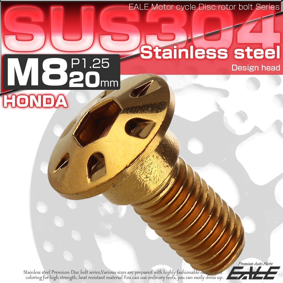 - ホンダ用 ブレーキ ディスク ローター ボルト M8×20mm P=1.25 SUS304 ステンレス デザインボルト ゴールド TD0124