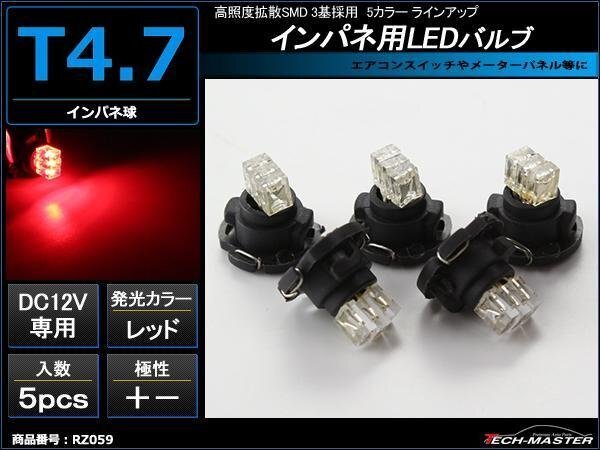 - T4.7LEDバルブ インパネ球 メーター/エアコン レッド5個入 RZ059