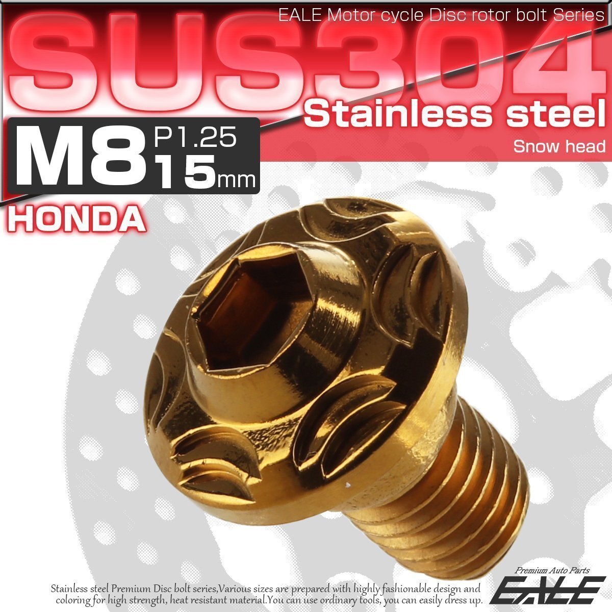 - ホンダ用 ブレーキ ディスク ローター ボルト M8×15mm P=1.25 SUS304 ステンレス スノーヘッド ゴールド TD0111