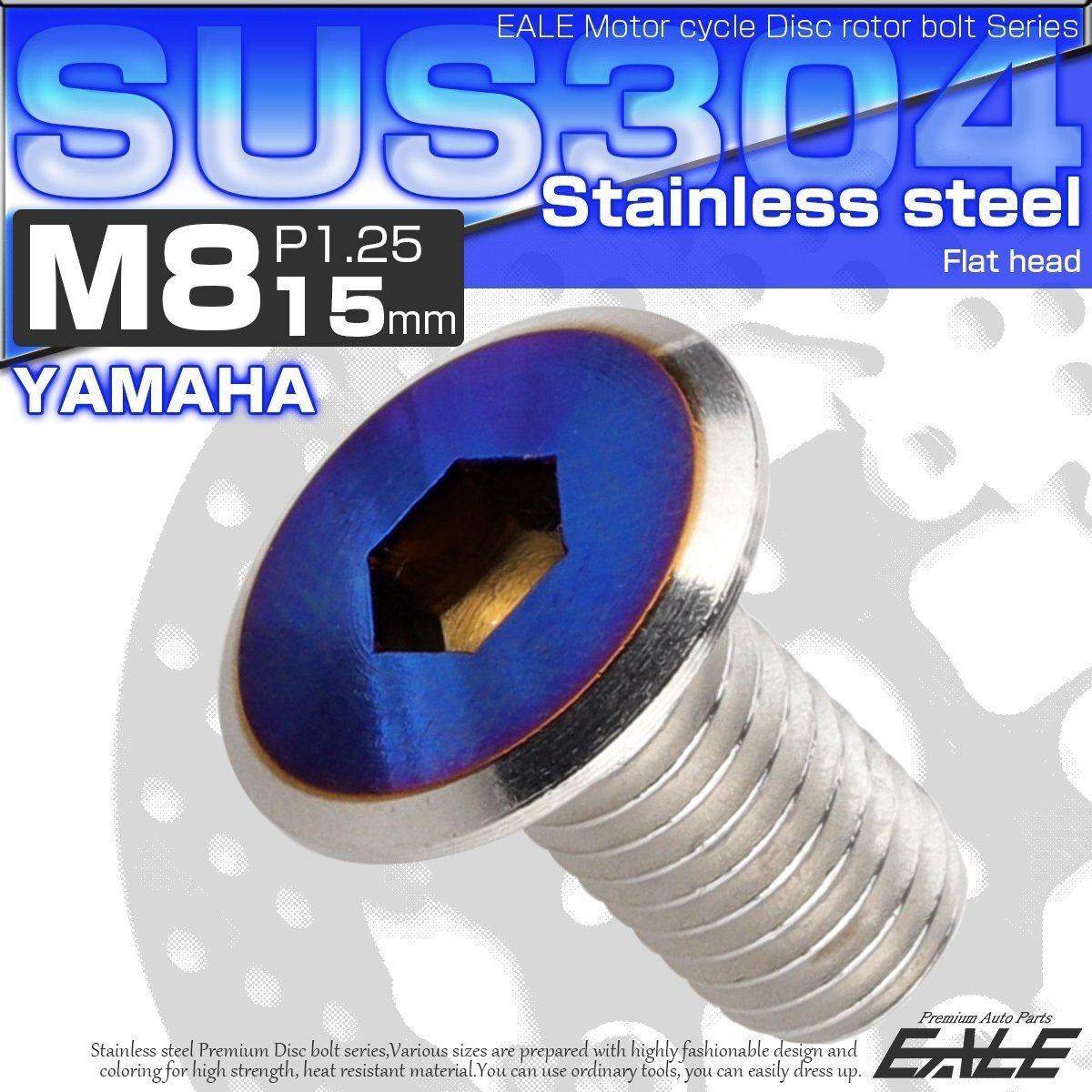 > ヤマハ用 ブレーキ ディスク ローター ボルト M8×15mm P=1.25 SUS304 ステンレス フラットヘッド シルバー/ブルー TD0321