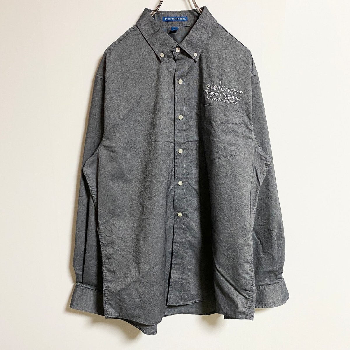 > 古着 used PORT AUTHORITY 長袖ワンポイント刺繍シャツ シンプル グレー 秋冬服 レトロ Lサイズ