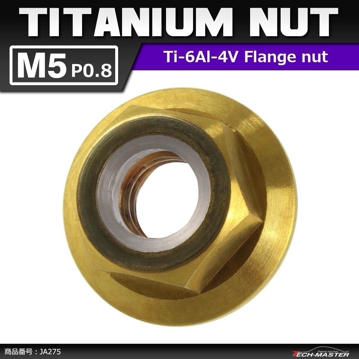 > M5 P0.8 64チタン合金 六角ナット フランジ付き ナイロンナット ゆるみ止め内蔵 ゴールドカラー 車/バイク 1個 JA275