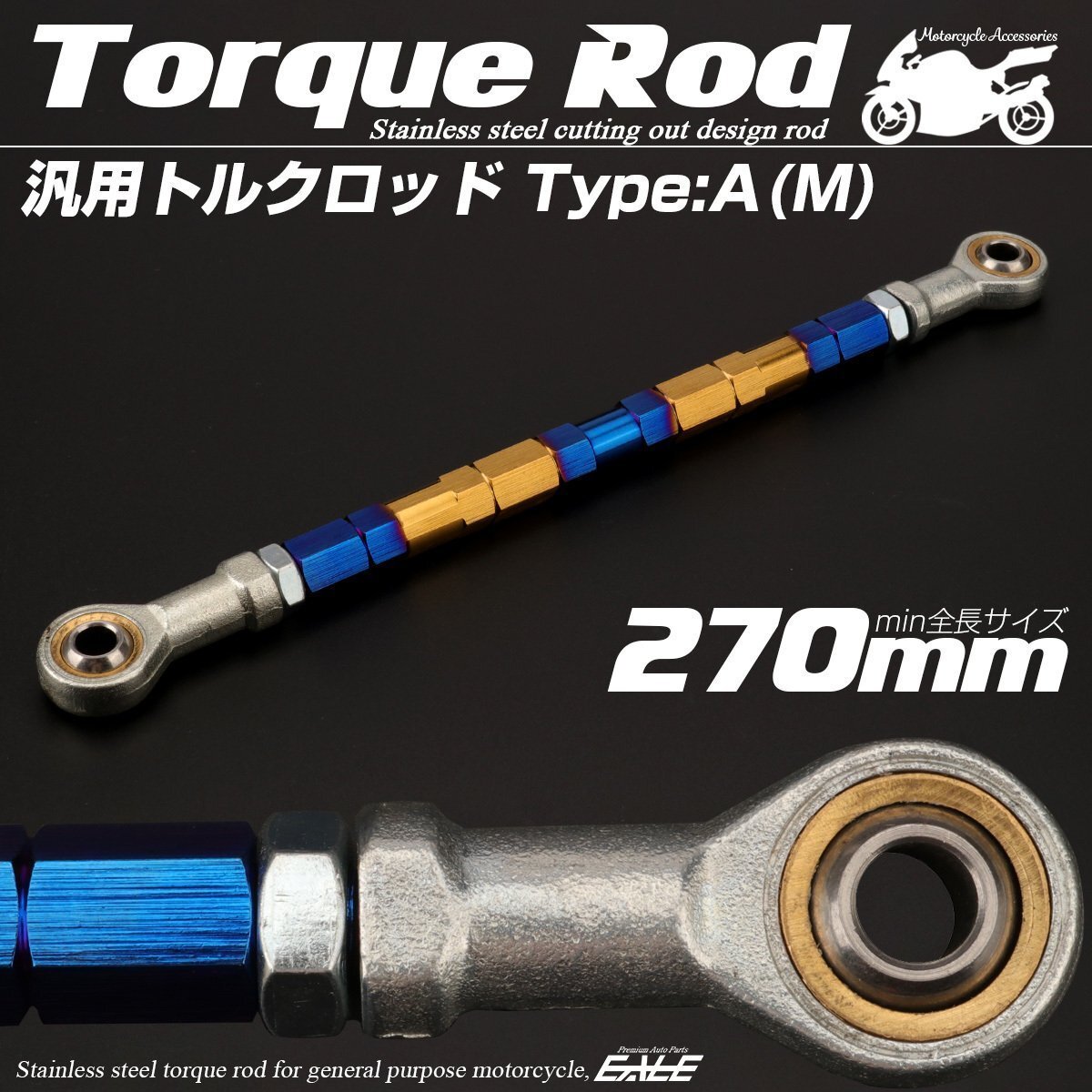 > 汎用 ブレーキ トルクロッド Mサイズ 取付幅250-270mm カラー ゴールド/ブルー 焼きチタン色 タイプA ターンバックル ピロボール TH0065