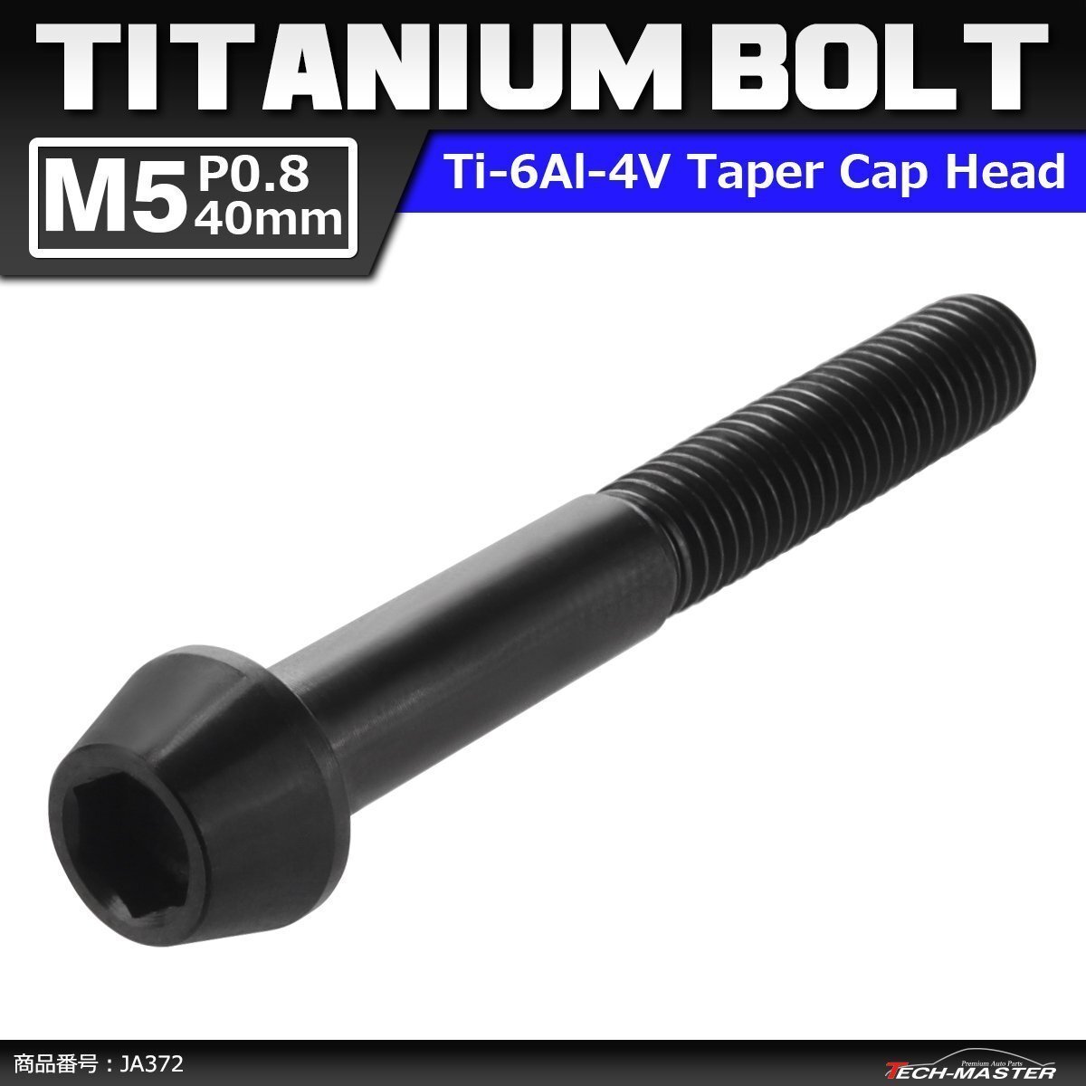 > M5×40mm P0.8 64チタン合金 テーパーヘッド 六角穴付き キャップボルト ブラック 黒色 ドレスアップ パーツ 1個 JA372