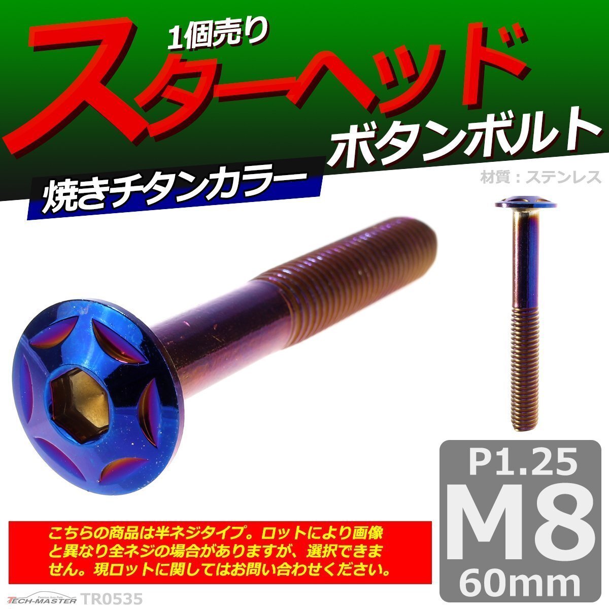 > M8×60mm P1.25 ボタンボルト スターヘッド ステンレス 車/バイク/自転車 ドレスアップ パーツ 焼きチタンカラー 1個 TR0535