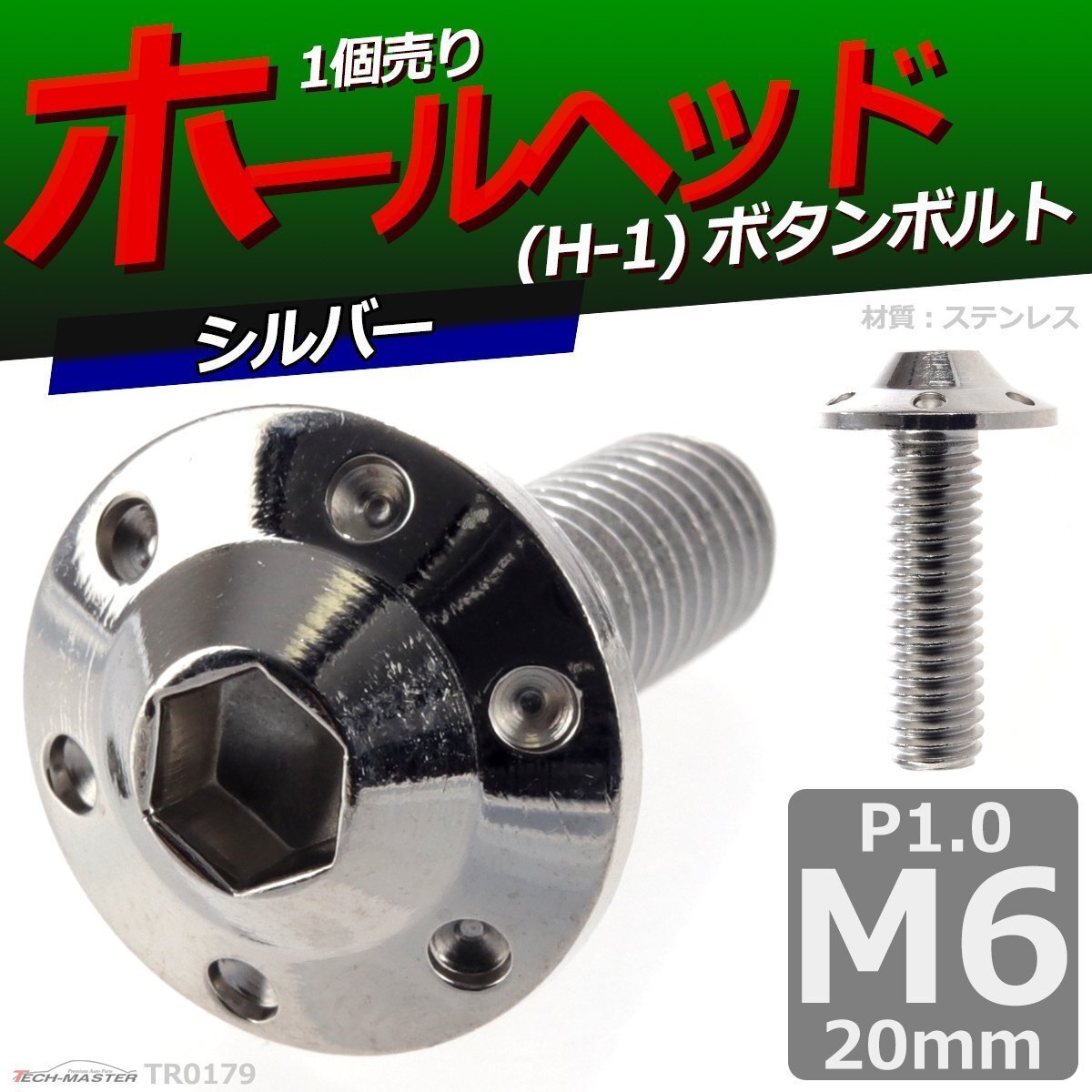 - M6×20mm P1.0 ボタンボルト ホールヘッド H-1 ステンレス 車/バイク/自転車 ドレスアップ パーツ シルバー 1個 TR0179