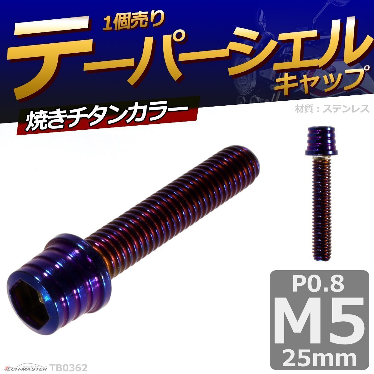 > M5×25mm P0.8 テーパーシェル キャップボルト ステンレス 車/バイク/自転車 ドレスアップ パーツ 焼きチタンカラー 1個 TB0362