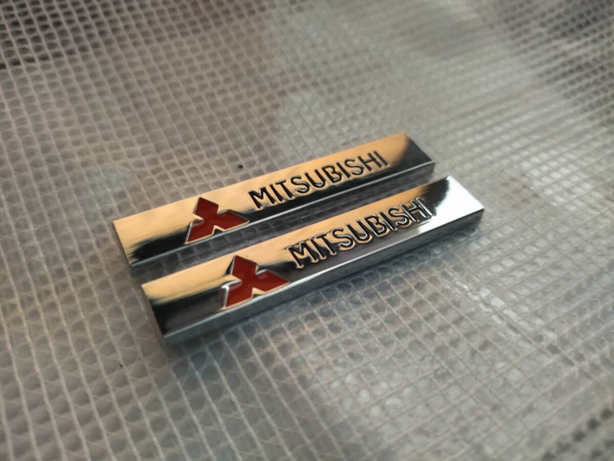 - 【ゆうパケット送料込】MITSUBISHI(三菱) エンブレムプレート 縦1.0cm×横6.0cm×厚さ2mm 2枚組 ①