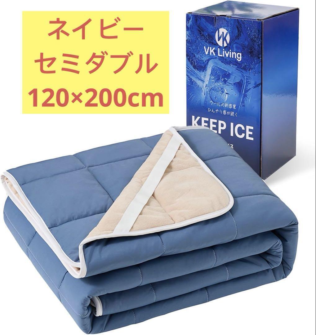 - 敷きパッド 夏用 強力持続冷感×ふんわり 【KEEP ICE】 5層構造 寒暖リバーシブル Q-MAX0.5以上 抗菌防臭 ネイビー セミダブル 120×200cm