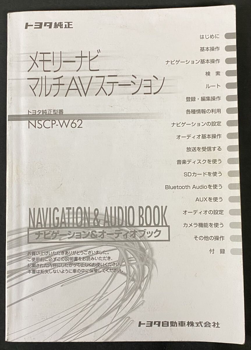 - TOYOTA 純正 メモリーナビマルチAVステーション NSCP-W62 取扱説明書 取り扱い マニュアル 取説 取扱書 取扱い トリセツ ナビゲーション