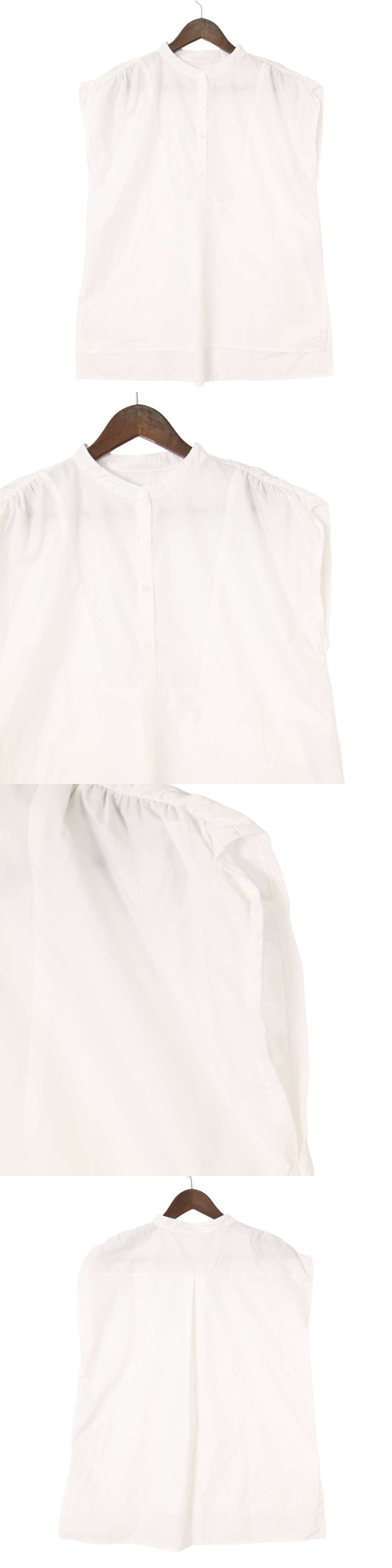 > 未使用★ ur's ユアーズ春夏★ ノースリーブ バンドカラー プルオーバー シャツ ブラウス チュニック Sz.M レディース 白