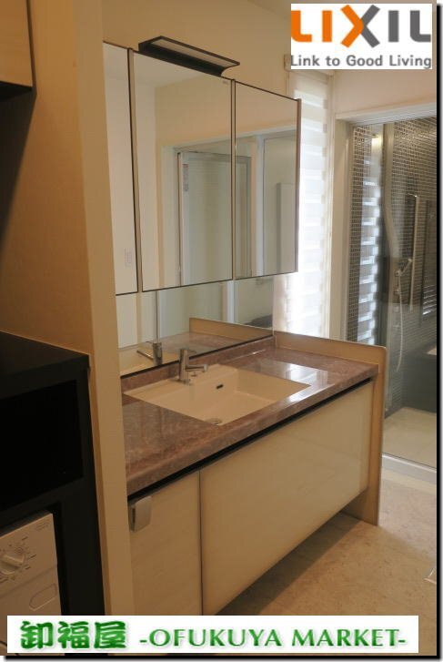 > 511536■LIXIL 洗面化粧台 W1490 三面鏡ミラーキャビネット収納■展示品/取り外し品/未使用品/千葉出荷