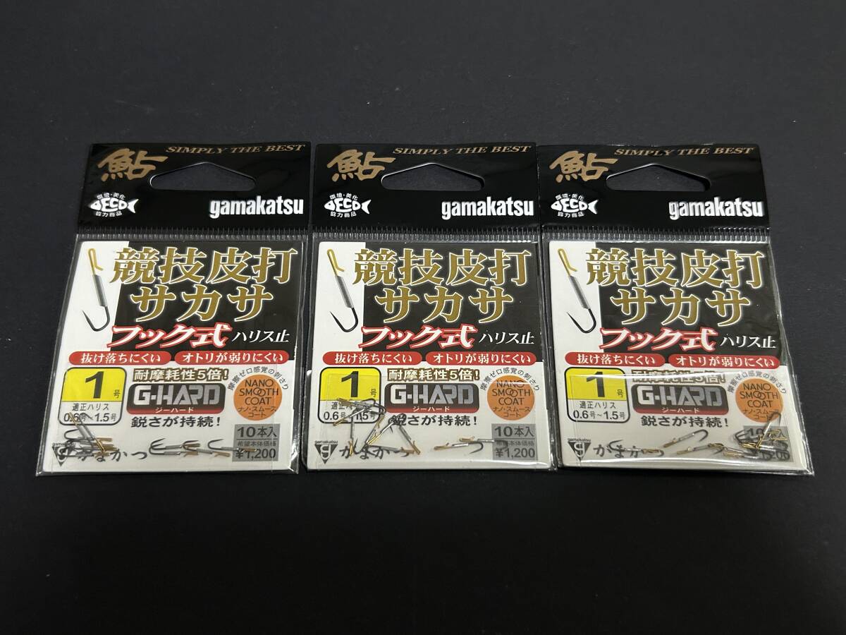 - B ■■ 新品 がまかつ G-HARD 競技皮打サカサ フック式 ハリス止 1号 3パックセット 10本入り gamakatsu ■■ B2.09