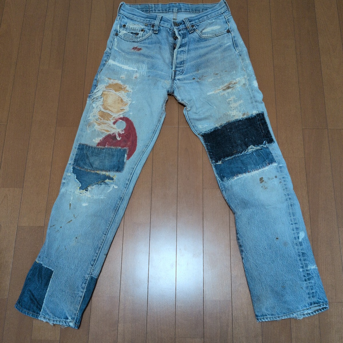 - 70s Levis 501 66後期 USA製 デニム リペア多数 カスタム品 アメカジ デニム ワーク グランジ クラッシュ 唯一無二 再構築
