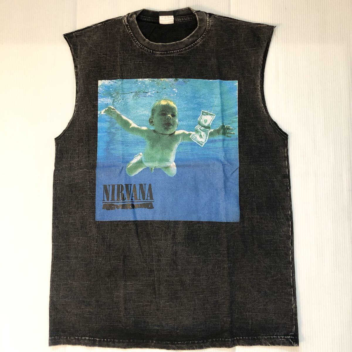 > ニルヴァーナ Nirvana NEVERMIND L ノースリーブ バンドTシャツ ロックTシャツ ブラック .