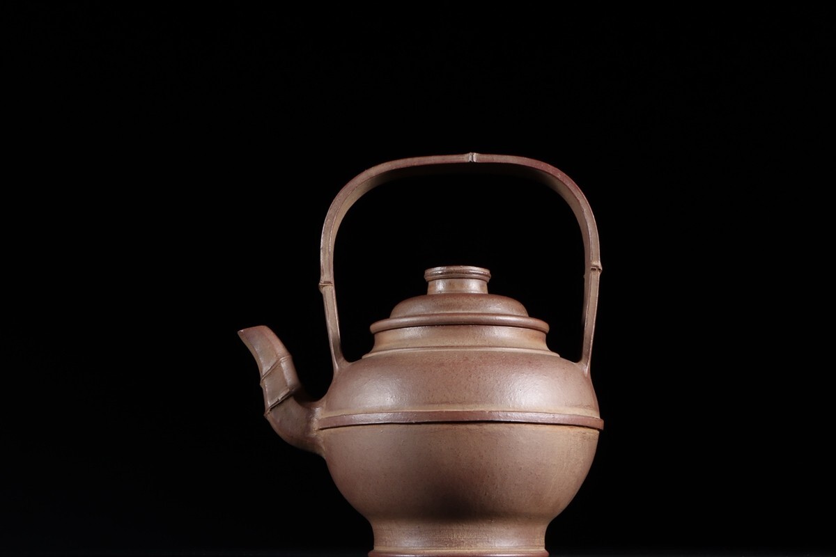 - 「紫砂彫 竹節腰線 提梁紫砂茶壺 陳蔭千銘 清時代」陶磁器 急須 茶道具 古賞物 中国古美術 旧蔵出