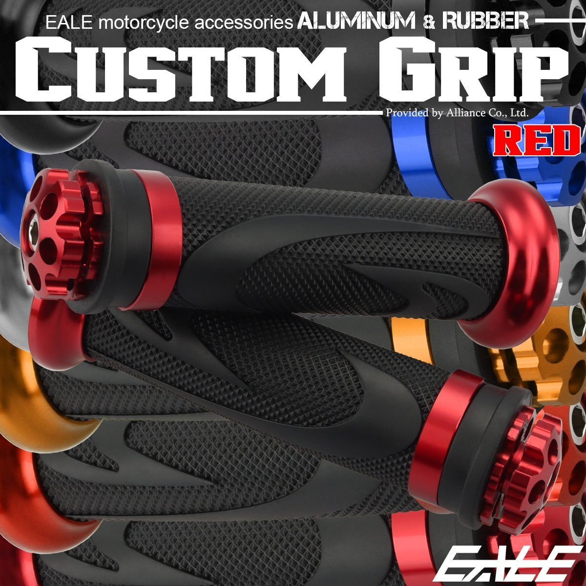 > バイク グリップ ハンドル アルミ ラバー バーエンド付き 22.2mm用 レッド 左右セット カスタム ドレスアップ S-242-R