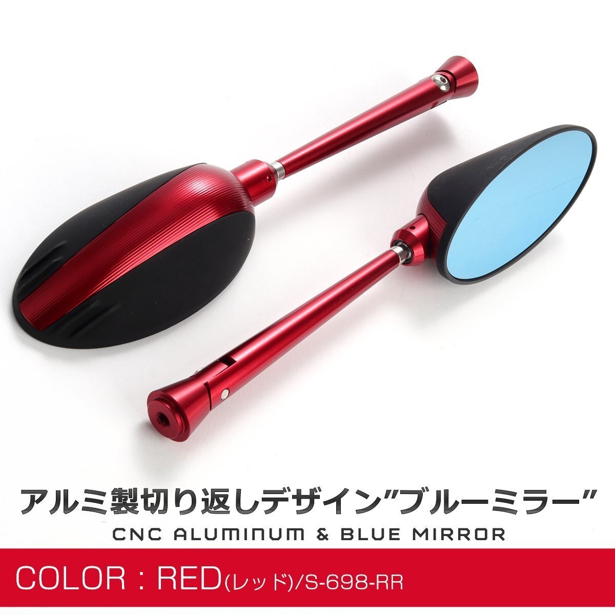 - アルミ製 切り替えしデザイン ミラー M8 M10 汎用 TYPE-B レッド 防磁ブルーミラー S-698-RR