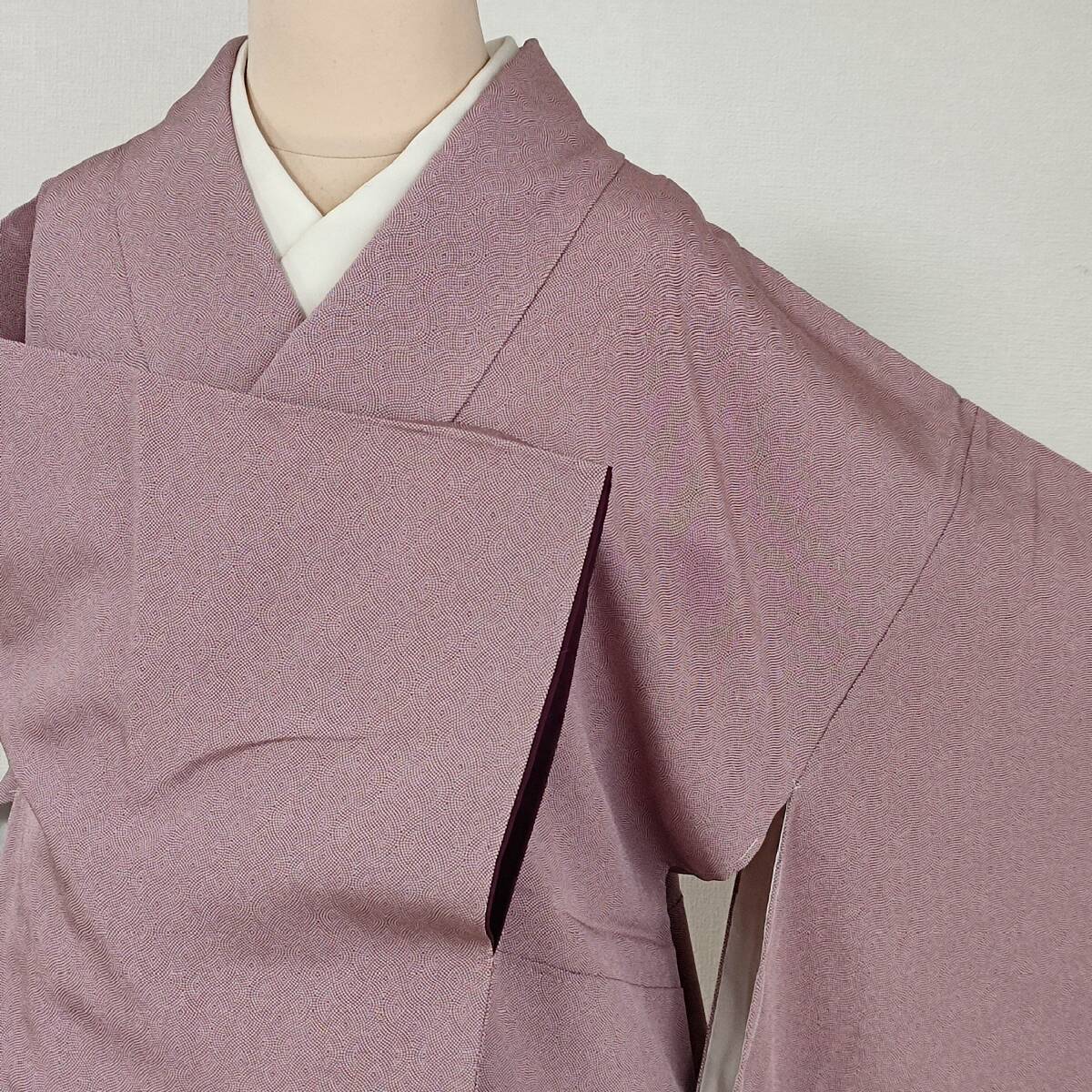 - 即決■着物の越田■裄64身丈165 正絹 美品 江戸小紋 色無地感覚 紋無し しつけ糸有り 紫系 お稽古 おでかけ ■む03E03