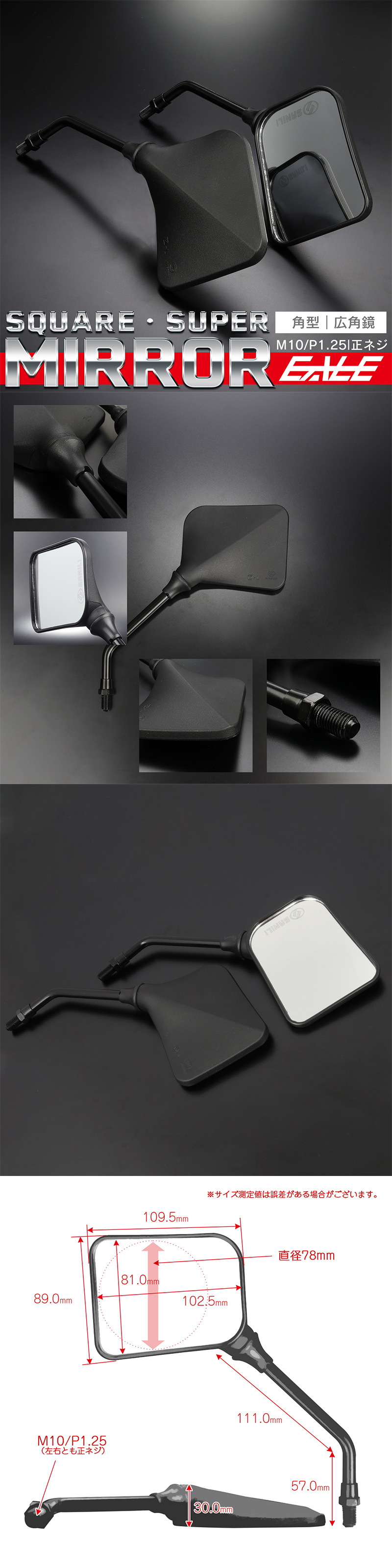 - スクエアミラー M10 正ネジ 広角鏡 薄型 角形 マットブラック 左右セット S-1155