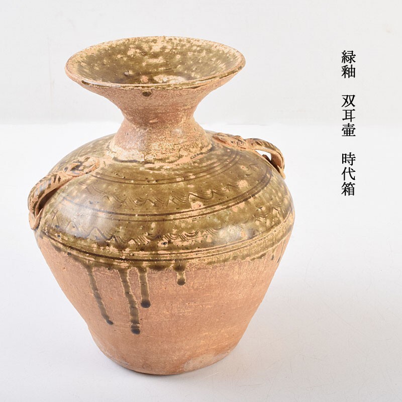 - 中国美術 緑釉 双耳壷 時代箱 古玩 CFES