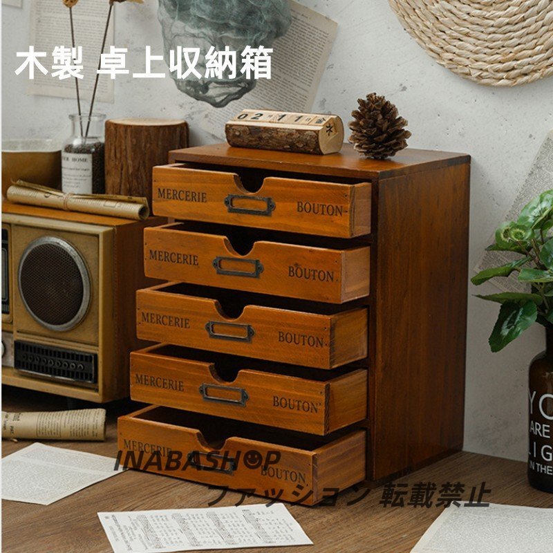 - 卓上収納箱 木製 卓上チェスト デスクトップ収納 インテリア 引き出し 小物入れ ギフト オフィス積み重ねヴィンテージ ビンテージ ブラウン