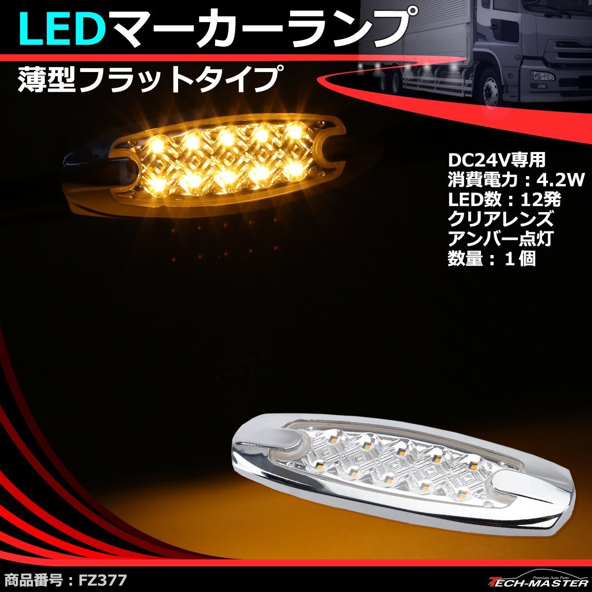 > LEDマーカーランプ 薄型 スリム 24V 汎用 LED12発 クリアーレンズ アンバー点灯 トラック サイドマーカー FZ377