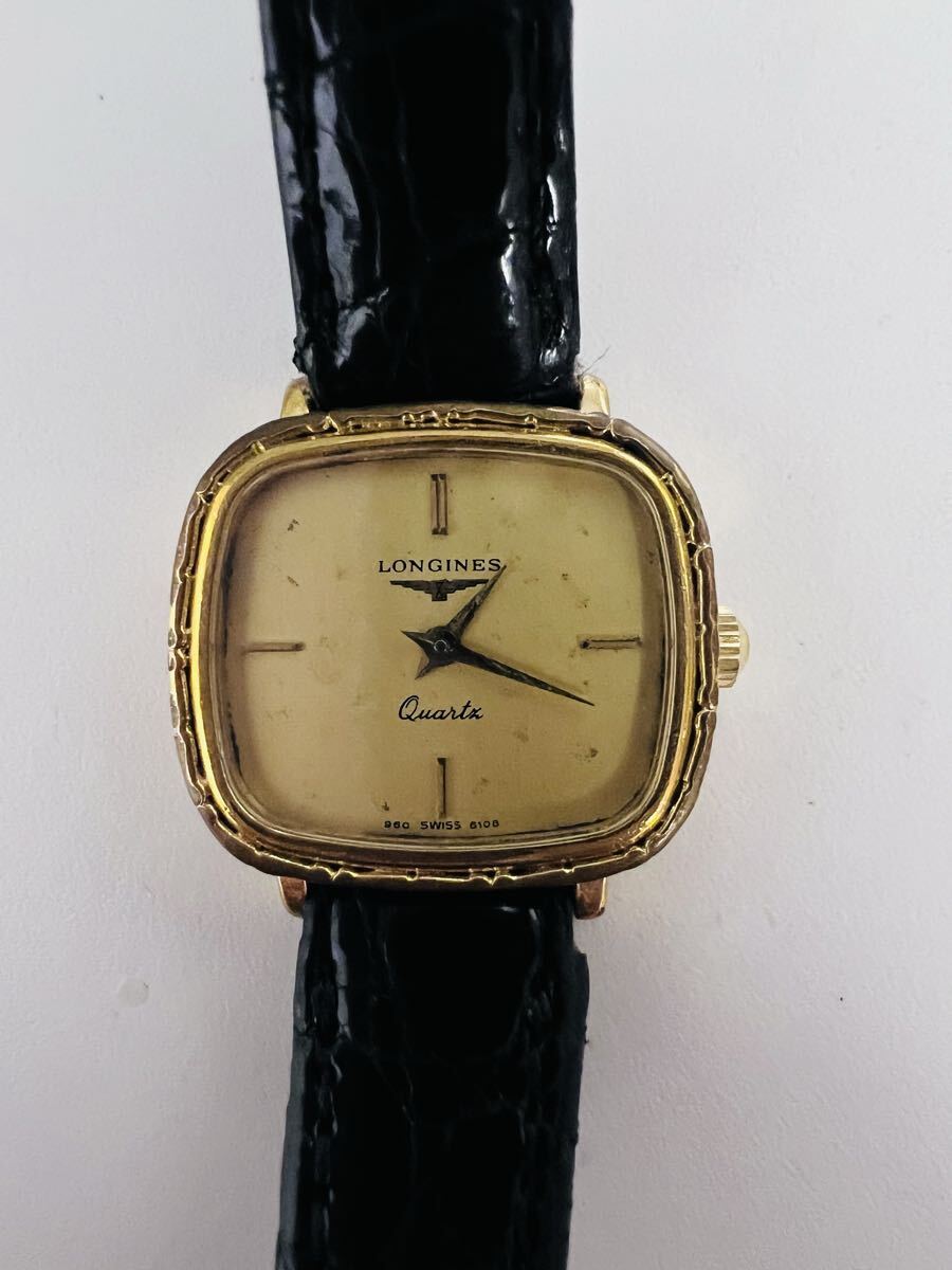 - ジャンク品 LONGINES ロンジン レディース腕時計 クオーツ スクエア ゴールド文字盤 尾錠/ベルト社外品 不動
