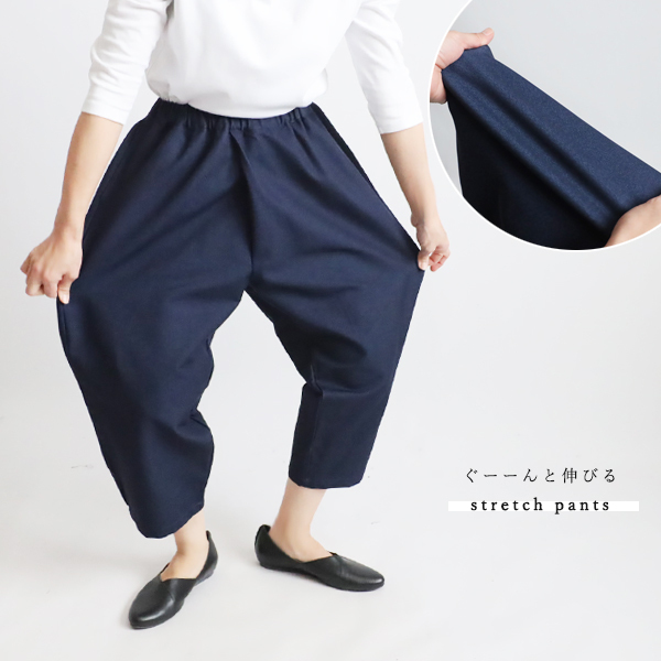 - 秋のパンツ祭り 80cm 斜縦ぐーんと伸びる伸縮ストレッチ パンツ コットンスパンデック ネイビーデニム R03B