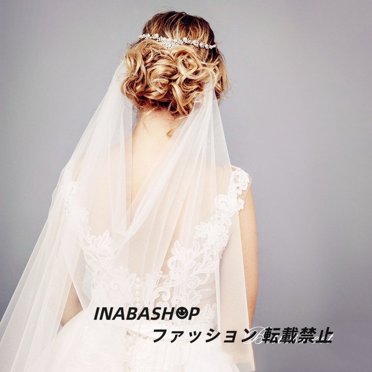 - 【ベール】【ロングベール】ウェディングベール ウエディングベール 2ヶ所止め コーム付き レース【ホワイト】