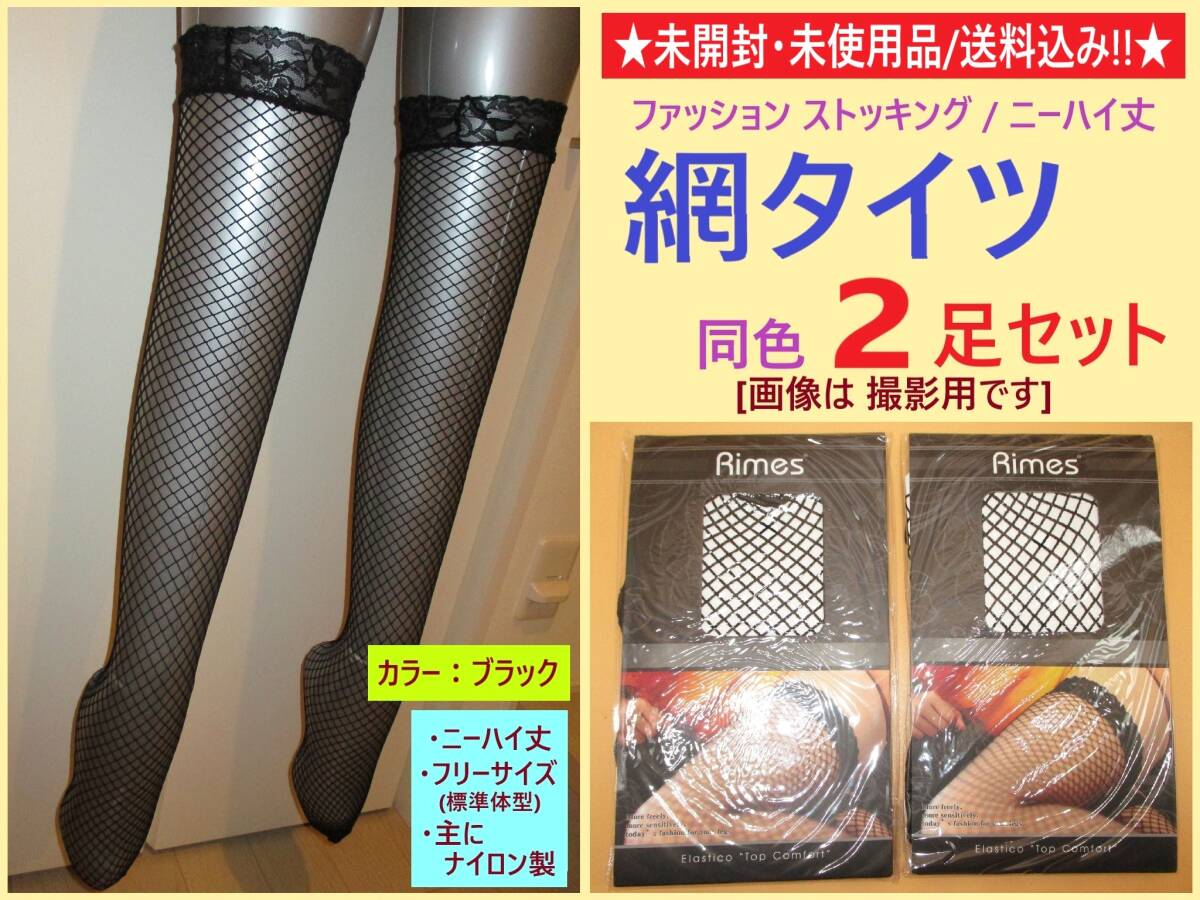 > 訳あり 未開封 ファッション ストッキング 網 タイツ 黒 2足組 B 長期保存 ブラック フリーサイズ セクシー ニーハイ ソックス あみ 海外製
