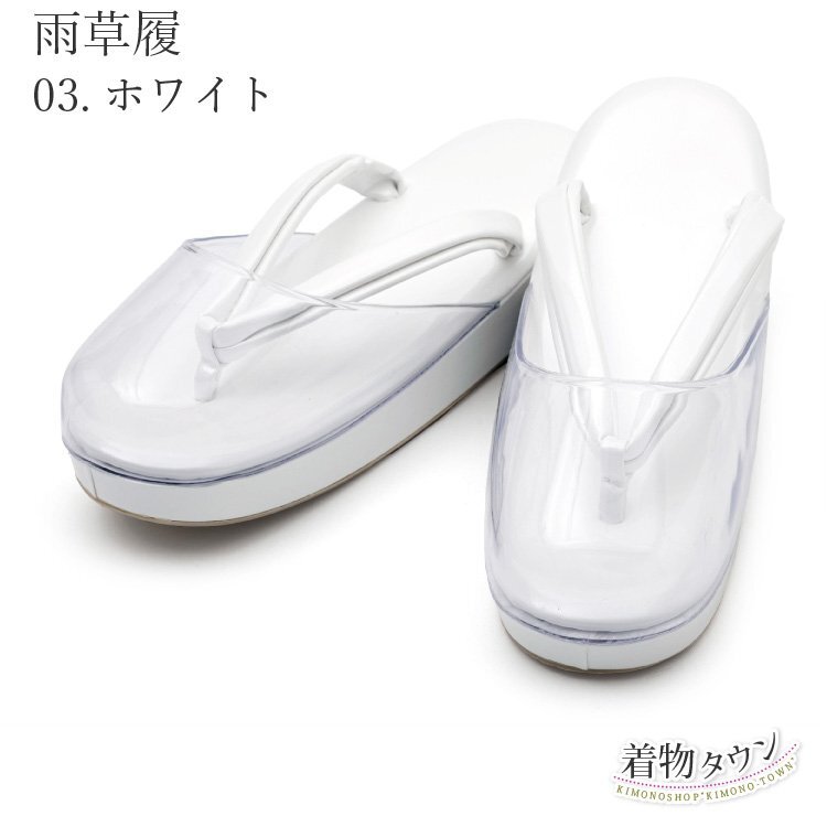 - ☆着物タウン☆ 雨草履 草履 レディース 女性用 日本製 03.ホワイト 白 雨用 着物草履 和装 雨具 履物 爪皮 zouri-00089