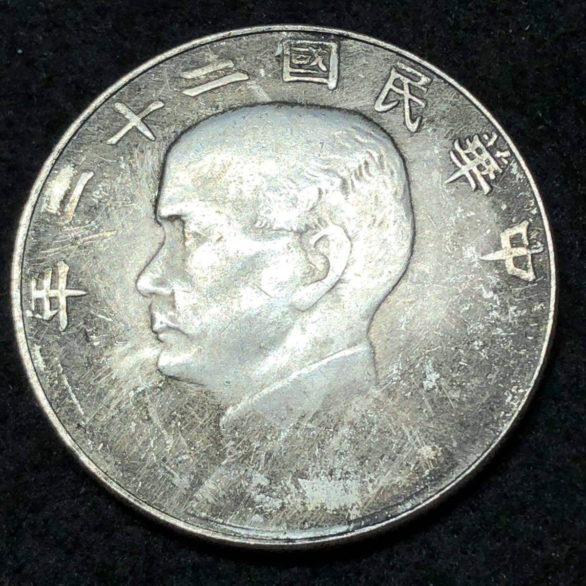 - 壹圓 中国 古銭 中華民国21年 孫文 記念硬貨 大型銀貨 一円銀貨 外国硬貨 貿易銀 あ704