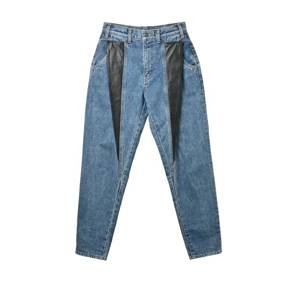 > 美品 CELINE 789D 07IP レザー切替 デニム パンツ 28 ブルー セリーヌ KL4BHAPK81