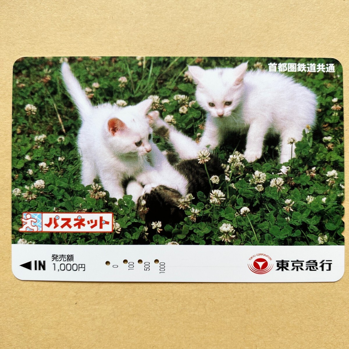 - 【使用済】 パスネット 東京急行電鉄 東急電鉄 シロツメクサと子猫 猫